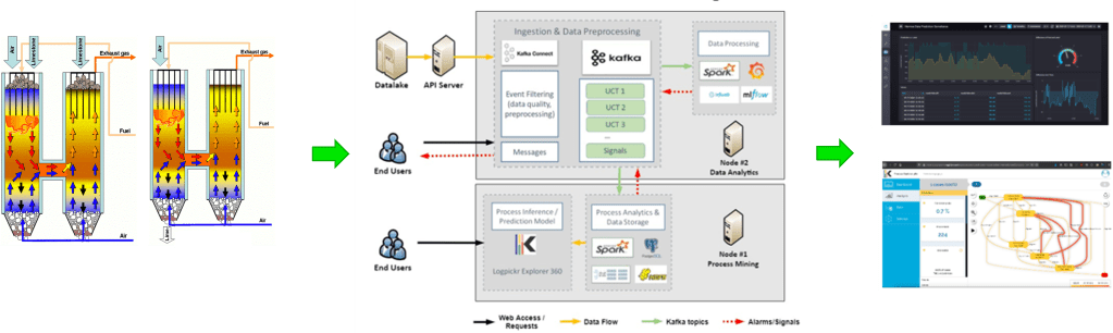Industrial processes could be highly complex due to the increased variability in the input and configuration parameters as well as the influence of unpredictable exogenous factors. In certain cases operators need to continuously monitor the sensor data and react within a few secondsby re-configuring the process parameters. Although operators might be quite experienced in regulating the process, often support is required from sensors, predictive modelsand digitaltwins to allow for more informative and quick decisions. In this part of the presentation, we discuss challenges and best practices in establishing a data processing pipeline for providing near real-time suggestionsto the operator.