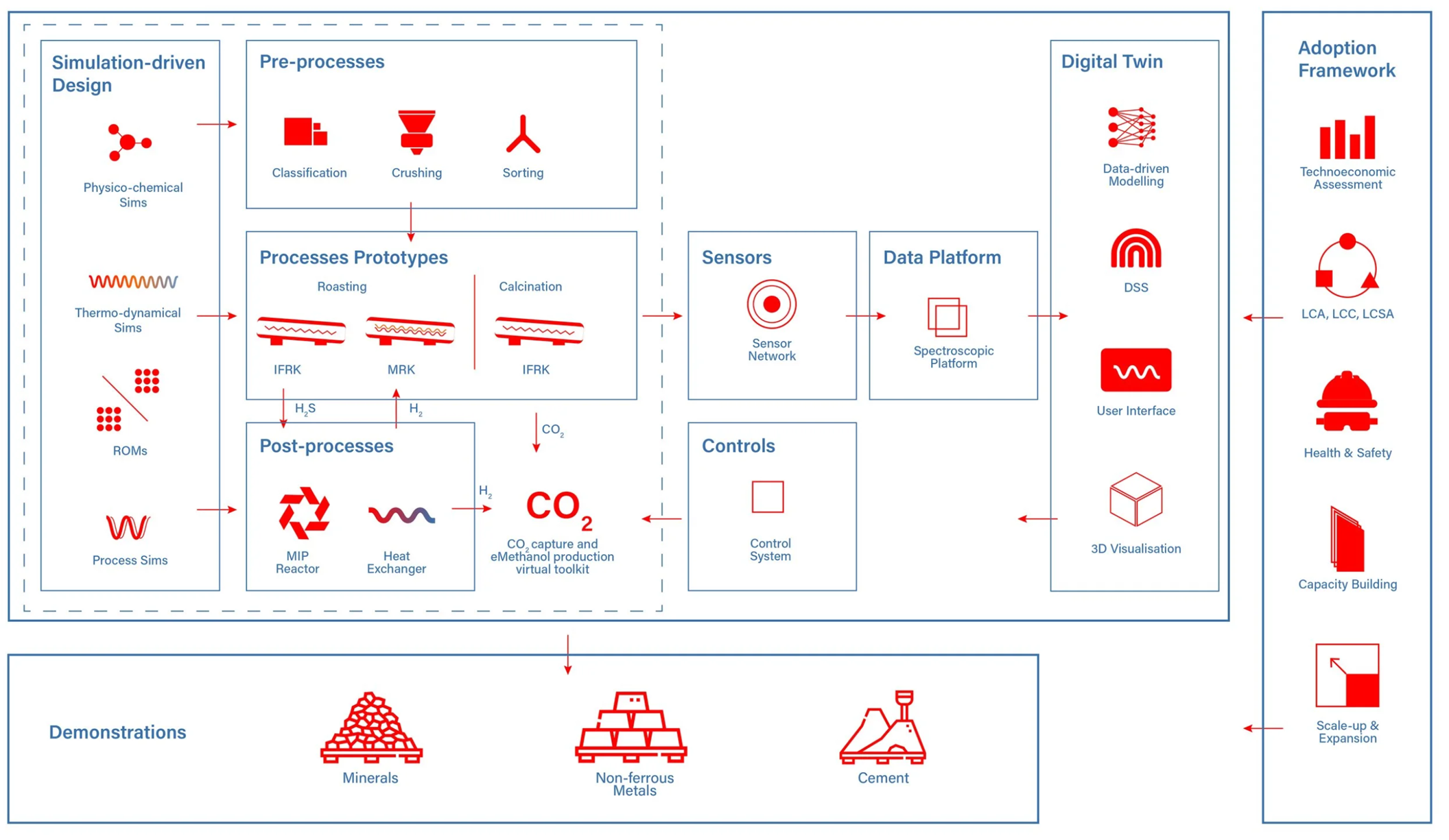 At its core, the project adopts a holistic approach across the entire industrial value chain, addressing three main stages of mineral processing: