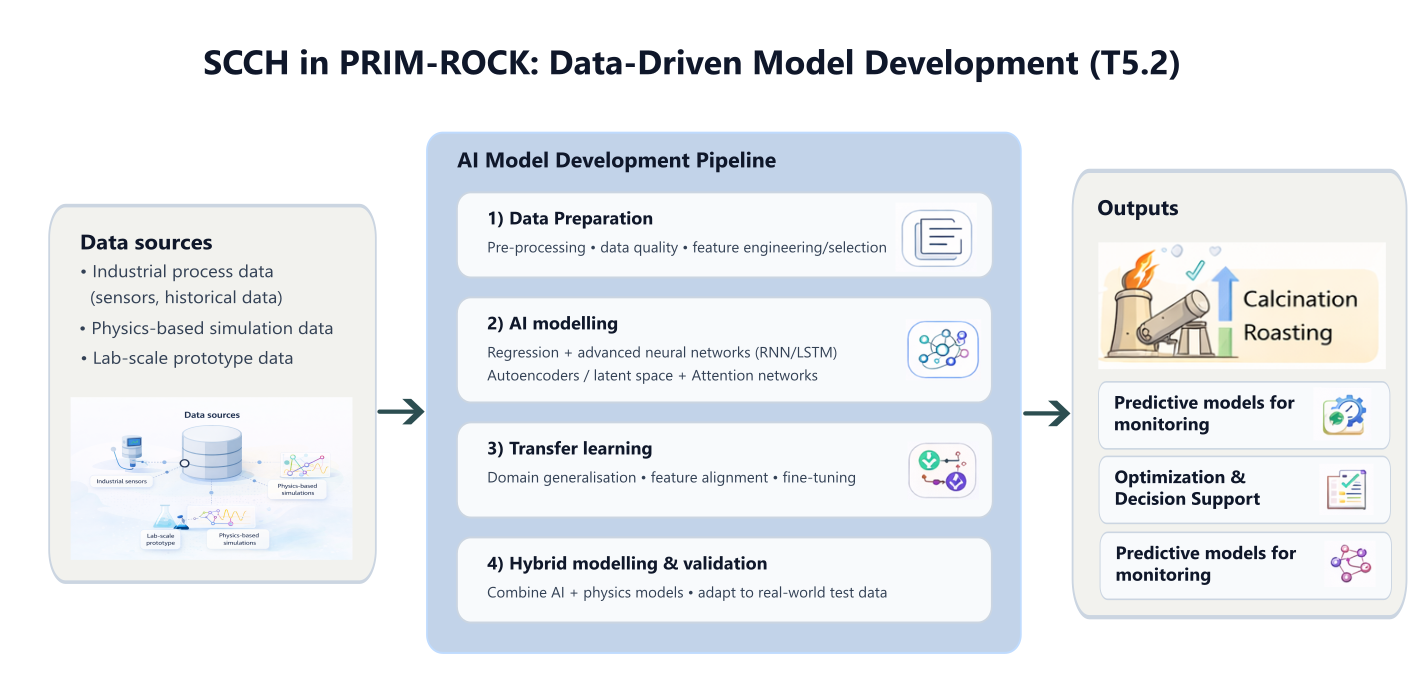 The work carried out by SCCH is part of Task 5.2: Data-driven model development, which aims to create predictive models capable of supporting process monitoring and operational optimisation for both calcination and roasting.